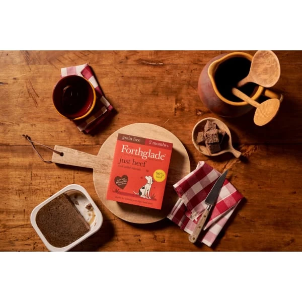 Our complementary Just 90% Beef is perfect for tailoring mealtimes, for a balanced meal add a good quality mixer such as Forthglade natural dry food. Gently steamed to retain as much natural flavour and goodness as possible. This is a grain-free recipe making it easier to digest, which is great for sensitive tummies. We’re a bunch of Devonian dog lovers on a mission to make your relationship with your biggest fan as nourishing as it can be. So we use natural ingredients with no junk or fillers. This is best-friend food and tail-waggingly good.