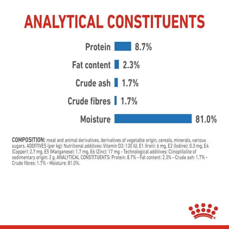 ROYAL CANIN® Light Weight Care Wet Pouches Adult Dog Food is a complete and balanced recipe that is suitable for pets over 10 months old who have a tendency to put on weight. Controlling a healthy weight can mean that less pressure is put on the joints and bones, which is vital for the overall wellbeing of dogs. The tasty meal is rich in omega 3 fatty acids such as EPA and DHA, which is great for the skin and coat, as well as for supporting strong bones.