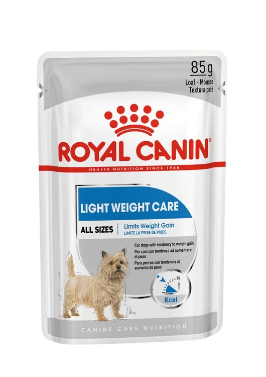 What’s more, this food’s limited dietary fat content helps to keep those extra pounds off your dog, supporting healthy weight management. The inclusion of high-quality, highly-digestible protein helps your dog to maintain a healthy muscle mass. Soluble and insoluble fibres are included to help your dog feel satisfied and full up in-between meals. These nutrients also contribute towards better digestion and maintaining regular gut transit time. This delicious wet pâté loaf comes in multipacks of 85g pouches. To cater to the preferences of each dog, ROYAL CANIN® Light Weight Care is also available as dry food with crunchy kibble. If you choose to feed your dog a mix of both wet and dry food, we recommend that you check the on-pack feeding guides first to make sure your dog gets an accurate amount of each.