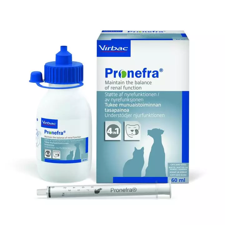Pronefra® Oral Suspension is a unique, highly palatable, liquid suspension to help support the normal function and health of the kidneys in cats and dogs.